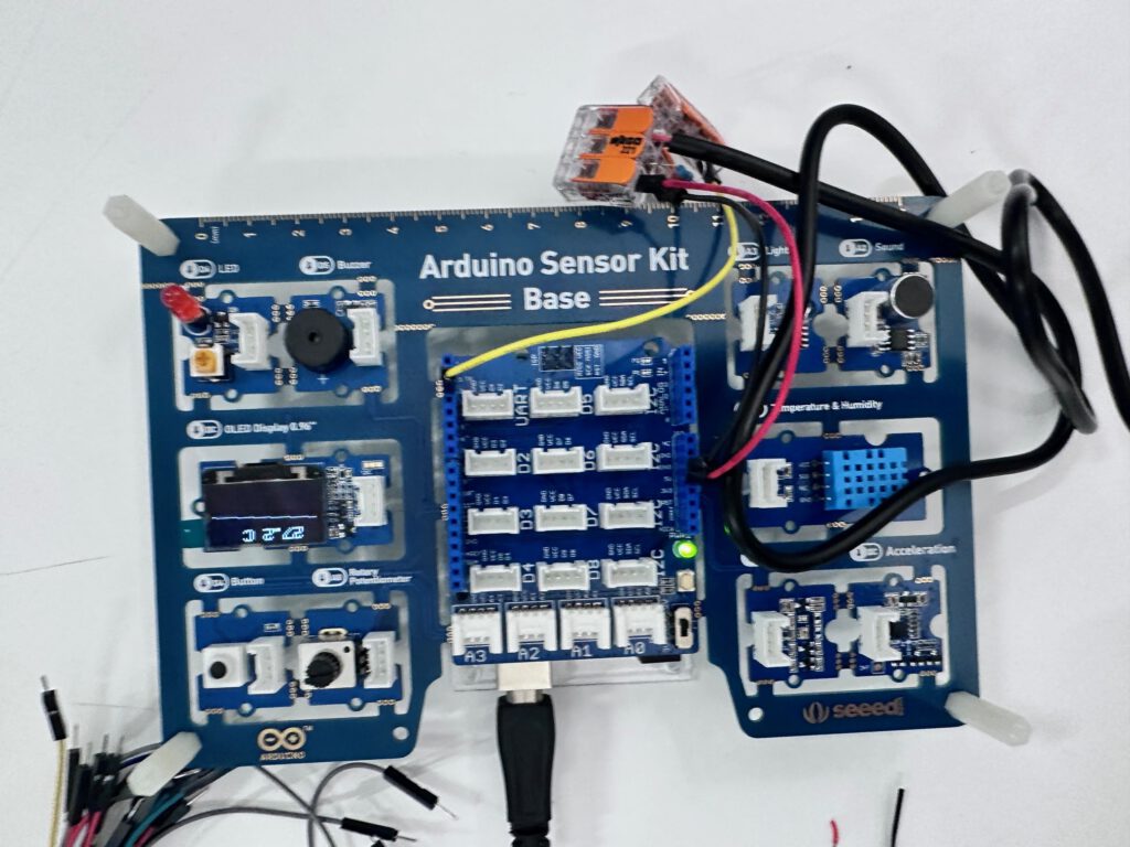 We maken gebruik van de Arduino Sensor Kit, een uitbreiding op de Arduino Uno met een reeks ingebouwde sensoren. Ik begin met de basis van embedded programmeren: het laten knipperen van een LED via Blink. Daarna breid ik dit uit met het uitlezen van een drukschakelaar en het instellen van thresholds waarmee processen worden gestart. Vervolgens werken we met sensoren voor lichtsterkte en geluidsdruk. Deze geven inzicht in helderheid en geluidsniveaus, en bij ultrasoon geluid ook in trillingen. Daarna meten we temperatuur en luchtvochtigheid, die zowel numeriek als in een grafiek worden weergegeven.