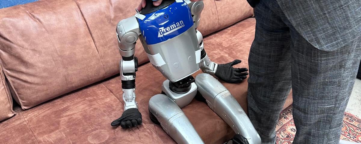 De foto’s zeggen genoeg. Op één moment loopt de robot zelfstandig. Op het volgende moment hurkt een begeleider ernaast om hem over een richel te helpen. Autonoom is een spectrum — en we zitten allemaal nog in het midden ervan.