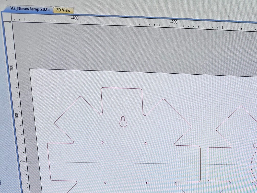Voor het maken van de mallen heb ik drie masters nodig. Deze masters voorzie ik van uitsparingen voor montagegaten, kabeldoorvoer en een uitsparing voor een ophangoog. Op basis van een ruwe schets met afmetingen maak ik een 2D-representatie in Vectric VCarve Pro. Deze software is ontwikkeld voor het genereren van toolpaths voor freesmachines en kan bovendien technische tekeningen exporteren naar DXF en SVG.