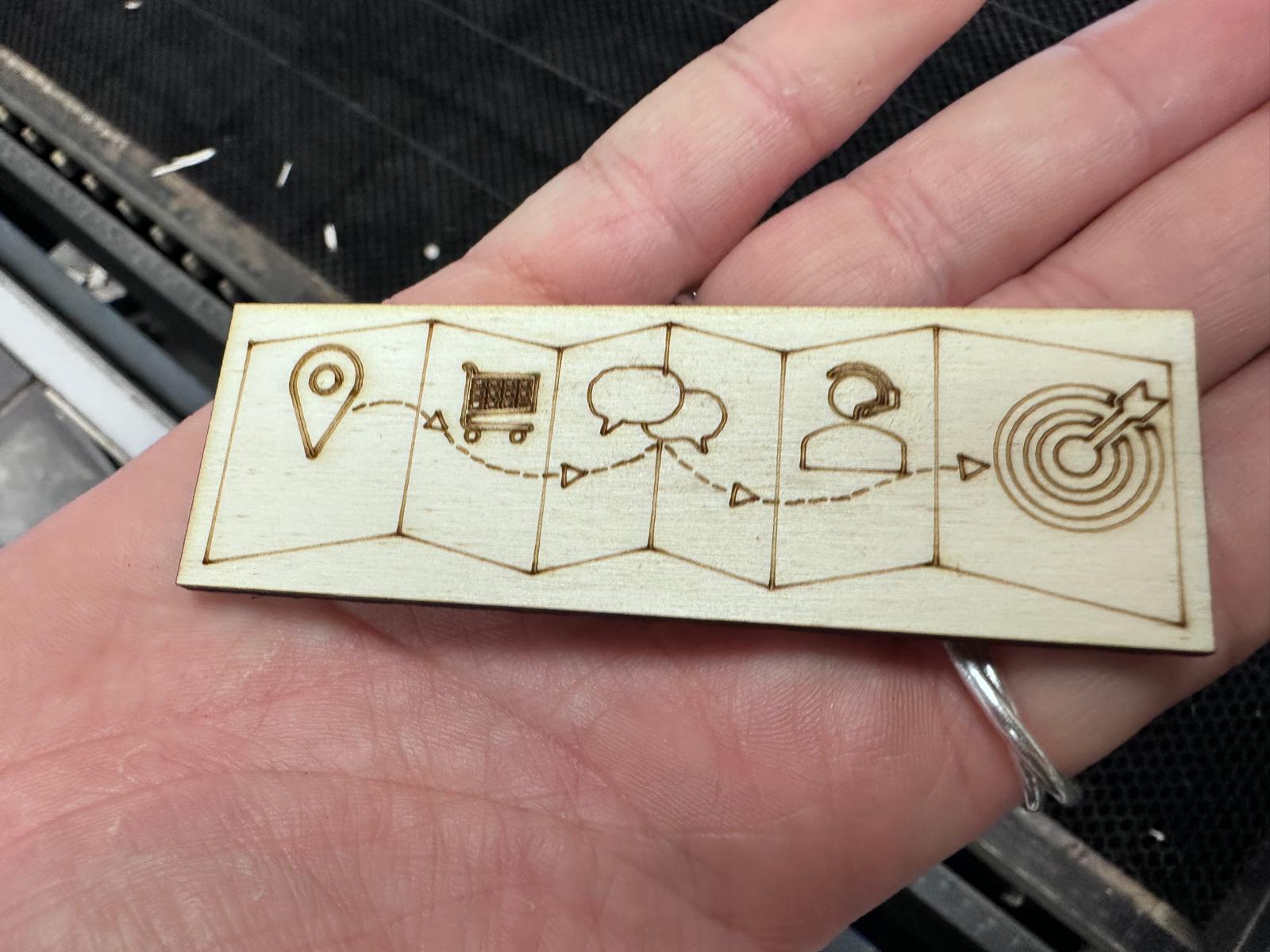 De variatie is groot. Een schaap. Een Manchester United-logo in transparant acrylaat. Een customer journey wegwijzer. Een stadskaart van je geboortedorp. Elk element vertelt iets over degene die het maakte.
