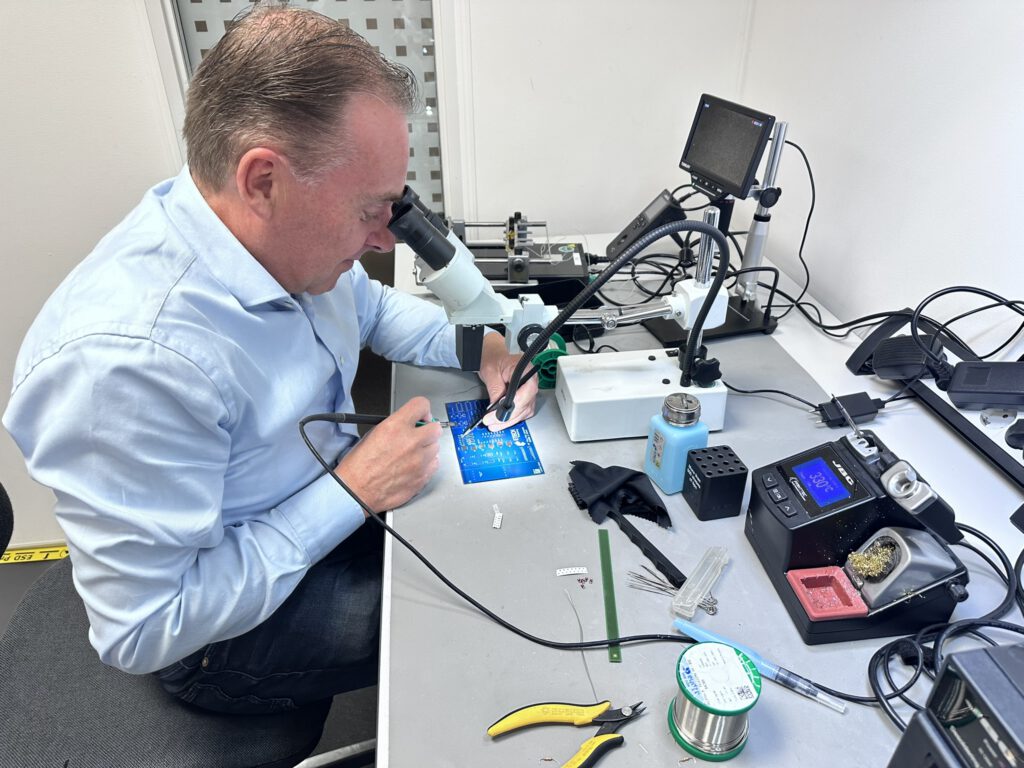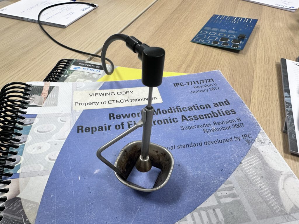 Etech Training, Landgraaf. Twee dagen lang niets anders dan SMD-componenten solderen, desolderen, repareren en beoordelen. De training heet officieel IPC 7711/7721 Advanced Rework & Repair en is gebaseerd op de internationale IPC-standaard voor printplaatonderhoud. Voor mij is dit een logische verdieping — ik soldeer al jaren, maar nu doe ik het ook methodisch goed.