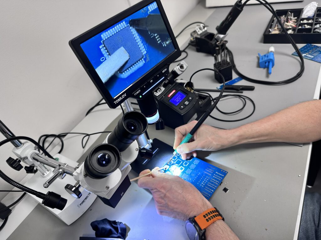 0402, QFP-100 en een microscoop — twee dagen SMD rework getraind op de norm van automotive tot avionics