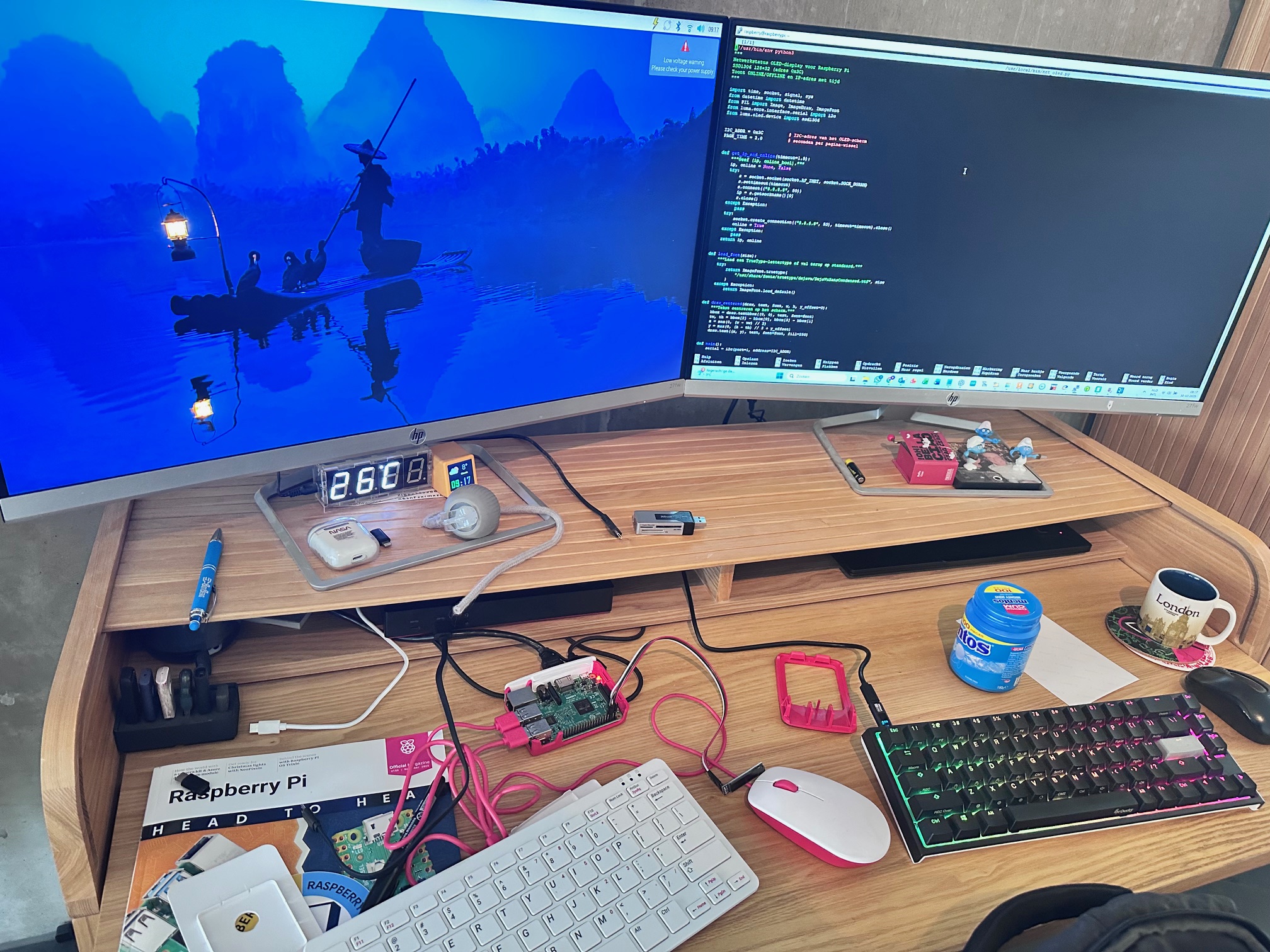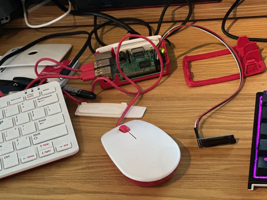 Om dit te realiseren heb ik mijn Raspberry Pi 3B uitgebreid met een 0.91” I²C OLED-display van 128×32 pixels.