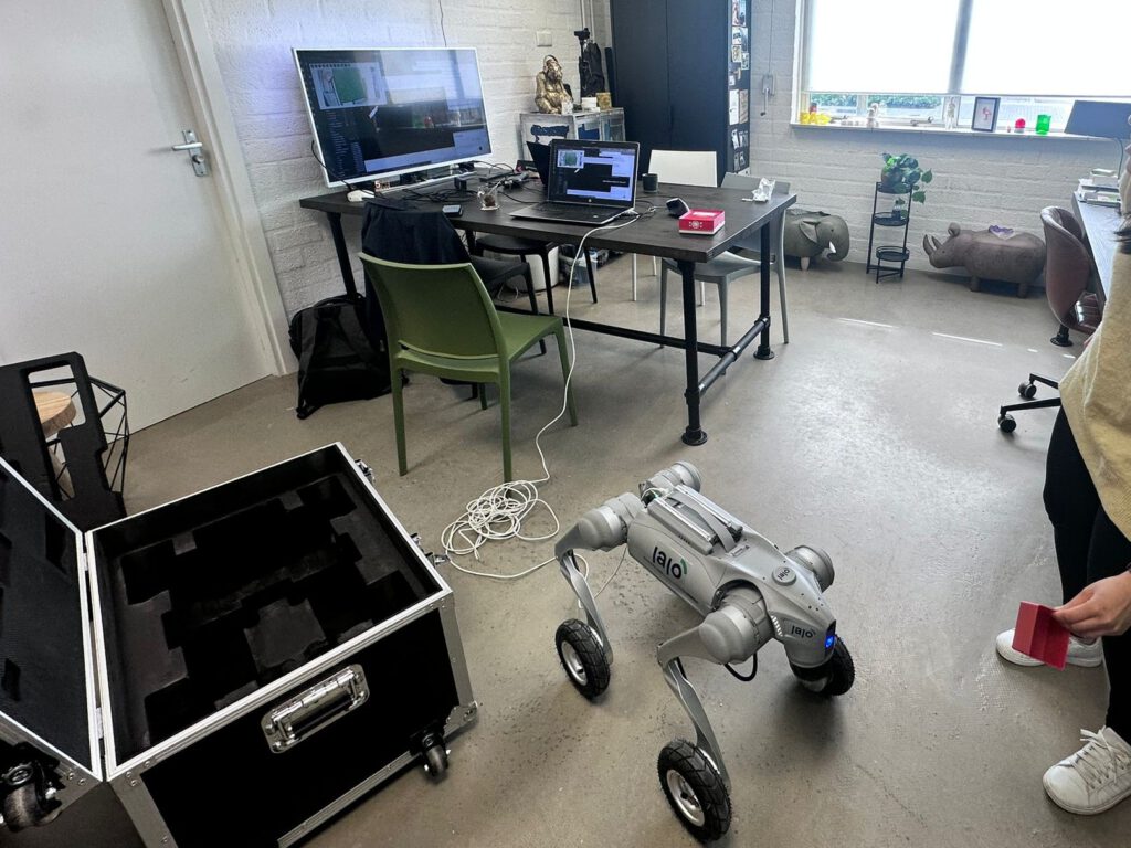 De TurtleBot3 is daarmee niet alleen een speeltje of leermiddel — hij is een directe voorloper van wat ik in de praktijk inzet. Via BotBerg ben ik actief betrokken bij de ontwikkeling van een geautomatiseerde inspectieoplossing voor nieuwbouw, samen met JaJo en SPARK Campus. JaJo zet daarvoor KAI in — een autonome inspectiehond op basis van de Unitree Go2W — en de SPARK Campus werkt met Sparky, een Go2 die ingezet wordt voor educatieve en onderzoeksdoeleinden.