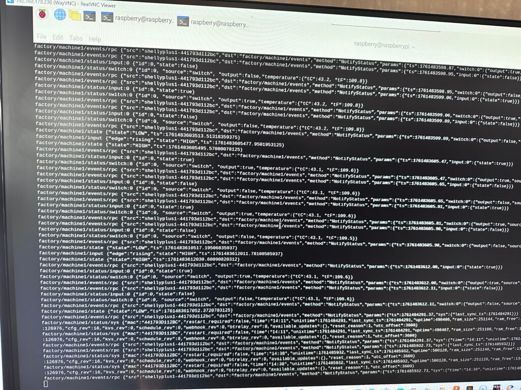 De complete testopstelling werkt zoals gehoopt: bewegingen worden betrouwbaar geregistreerd en draadloos doorgestuurd. Met deze aanpak kan ik per machine, zonder ingrijpen in de PLC, realtime triggers naar de MQTT broker sturen, welke verdere afhandeling naar programma’s en gebruikers regelt.