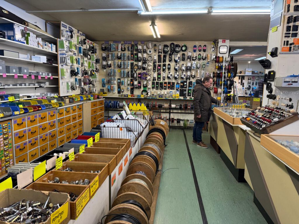Vandaag dus op bezoek bij Radio Service Twente. Een klassieke Nederlandse elektronicazaak met een lange geschiedenis, bekend onder generaties hobby-elektronica-liefhebbers. Al actief sinds de jaren ’60 en geroemd om het brede aanbod: buizen, schakelaars, transformatoren, luidsprekers, printplaten, draden en gereedschappen — en vooral onderdelen die je vroeger niet bij de reguliere consumentenwinkels vond.
