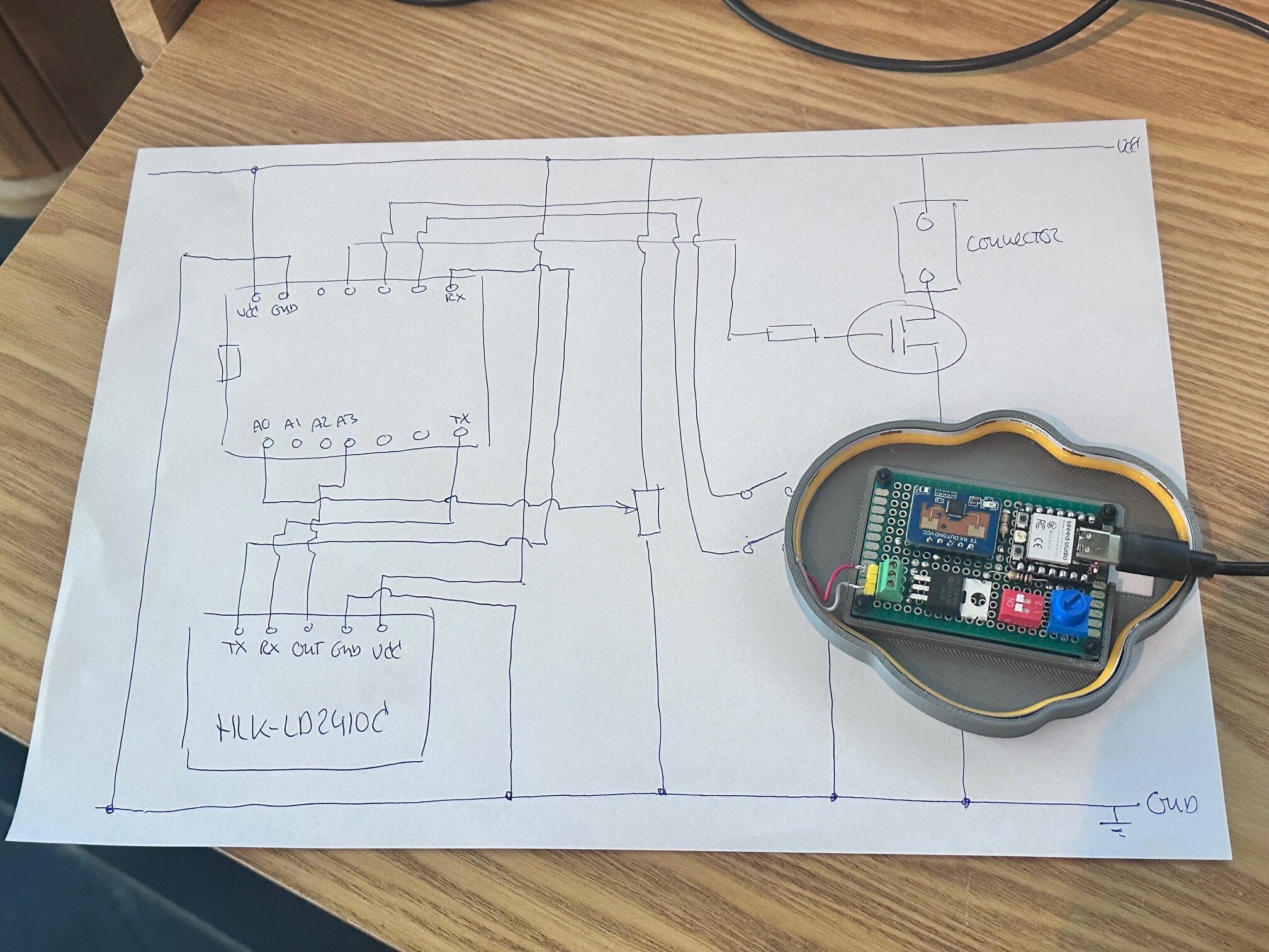 Om deze logica betrouwbaar te realiseren is een embedded processor nodig. Vanwege de beperkte ruimte en de benodigde rekenkracht kies ik voor een XIAO ESP32-C3. Deze compacte controller programmeer ik in C++ en leest continu de afstandsdata uit de radarsensor. Spikes worden genegeerd, nulwaarden vastgehouden en met een low-pass filter van circa een halve seconde ontstaat een vloeiende lichtrespons.