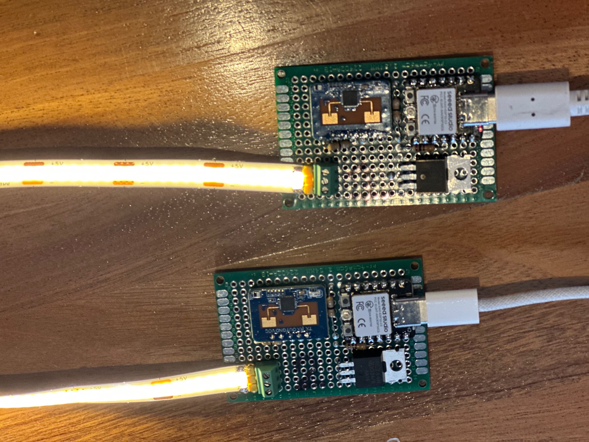 De eerste versie die ik oplever richt zich op aanwezigheid, nog niet op afstand. Met instelbare op- en afschaaltijden ontstaat zo een robuuste LED-driver waarmee onderlinge interferentie getest kan worden. In een volgende stap wordt afstand wél een bepalende factor voor de lichtintensiteit, wat complexere filtering van radardata vereist.