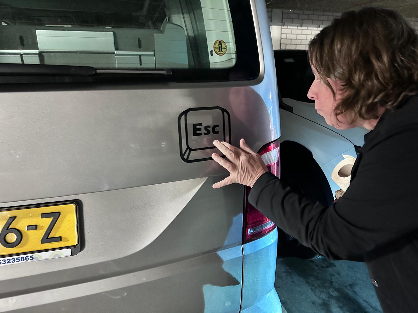Een camper een naam geven maakt ’m persoonlijk. Het voelt minder als een voertuig en meer als een reisgenoot met karakter. Elke reis krijgt zo z’n eigen verhaal. Met een sticker laat je dat ook zien aan de buitenwereld: dit is óns huisje op wielen — herkenbaar, trots en een tikkie eigenwijs. Vandaag krijgt onze camper daarom een visuele handtekening in de vorm van een Esc-toets.